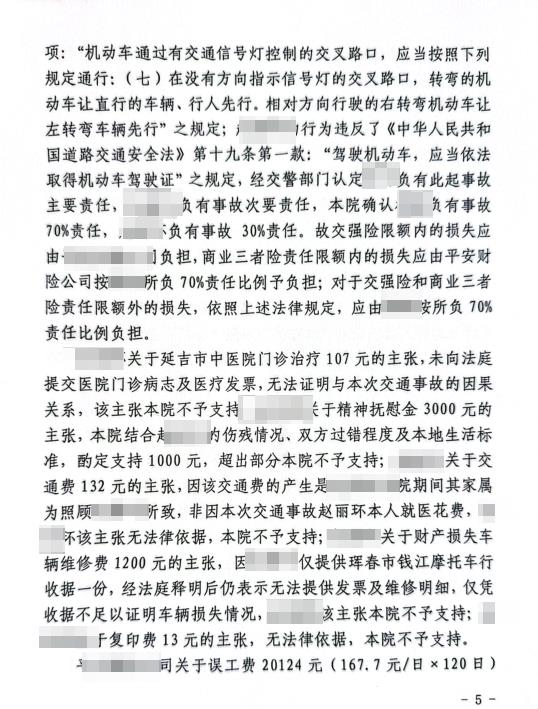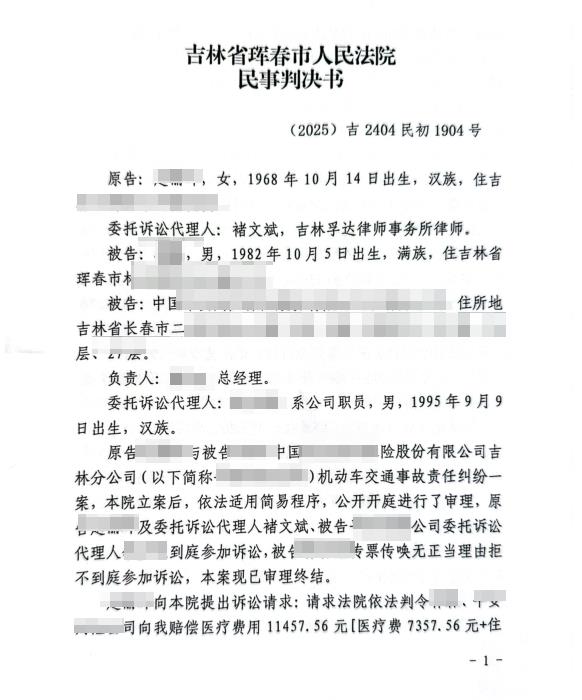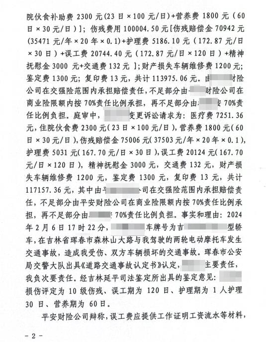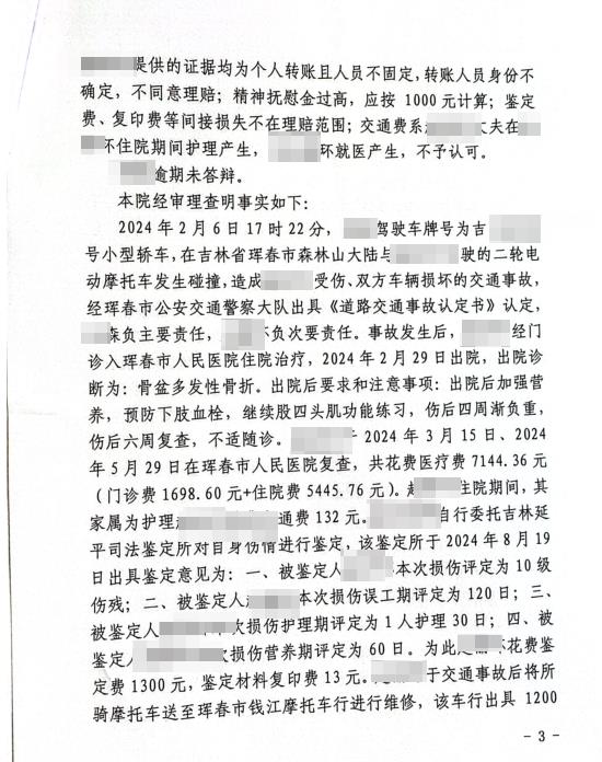 63岁交通事故次要责任10级伤残获赔近20万。