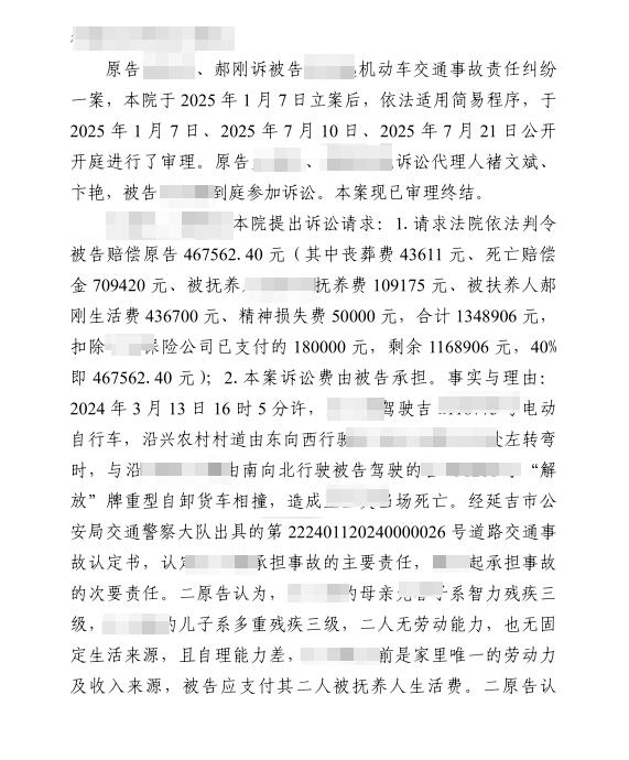 63岁交通事故次要责任10级伤残获赔近20万。