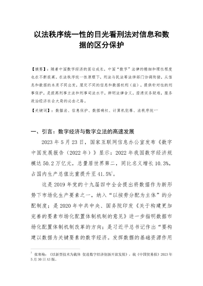 以法秩序统一性的目光看刑法对信息和数据的区分保护 黄双双