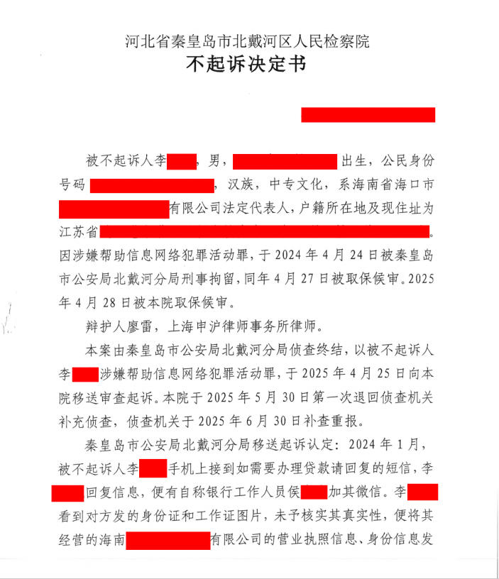 廖雷律师成功为嫌疑人李XX刑事辩护取得不起诉的最佳结果,李XX成功脱罪(帮信罪),免留案底,详见《不起诉决定书》。