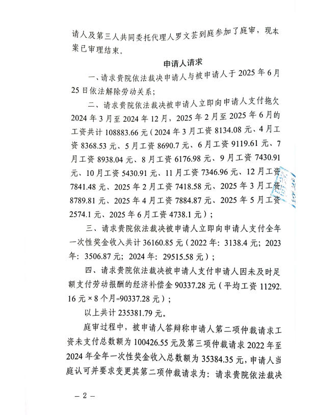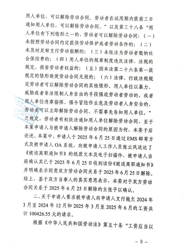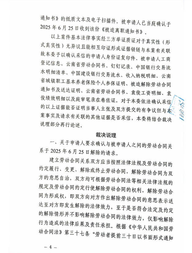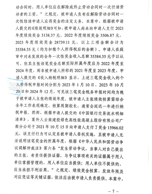 昆明经济技术开发区劳动人事争议仲裁委员会仲裁裁决书2