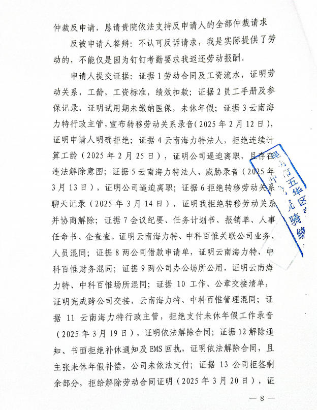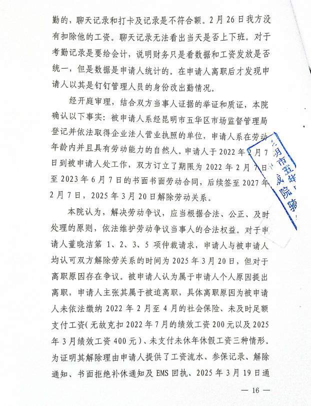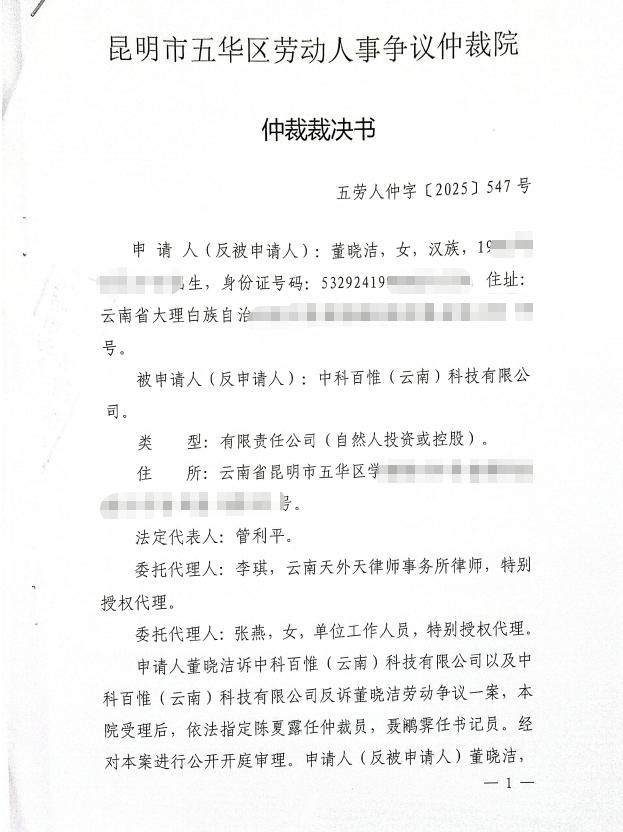 昆明市五华区劳动人事争议仲裁院 仲裁裁决书