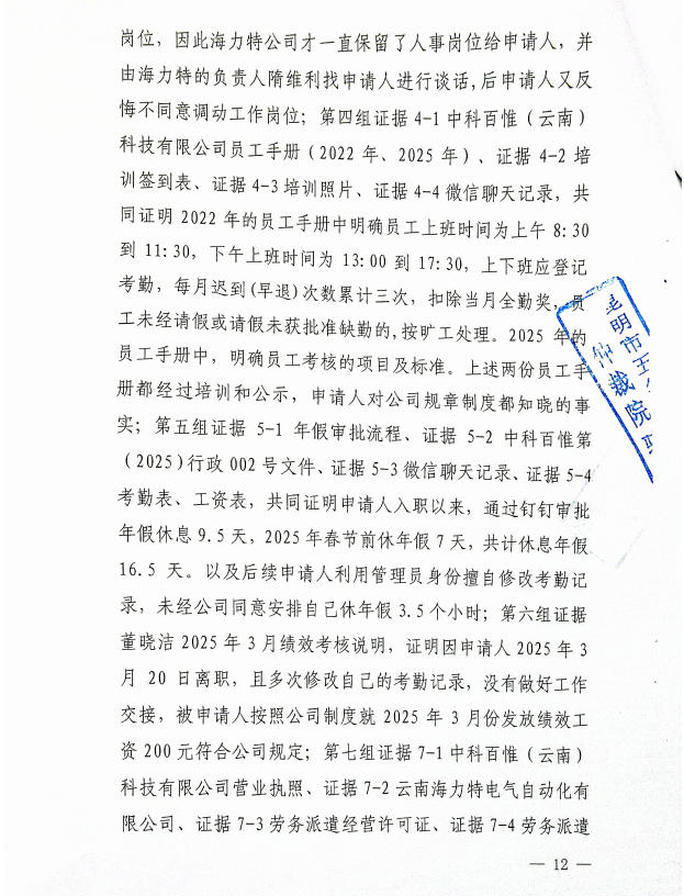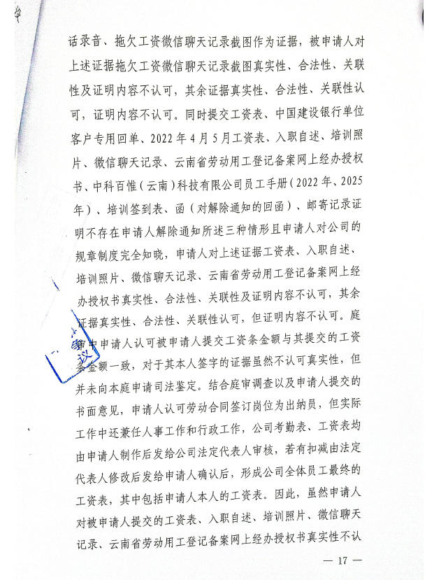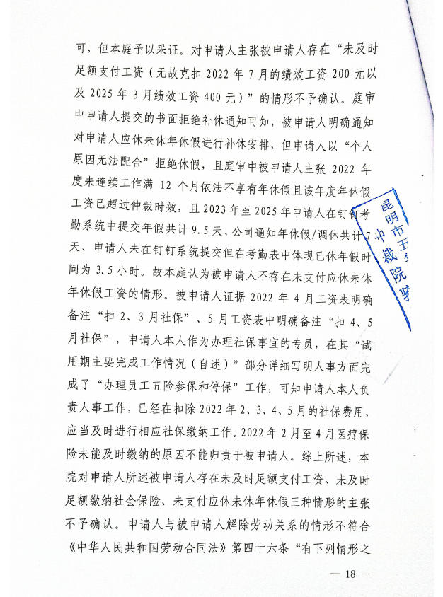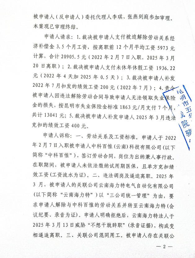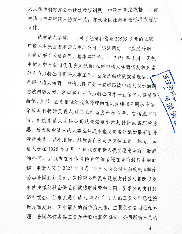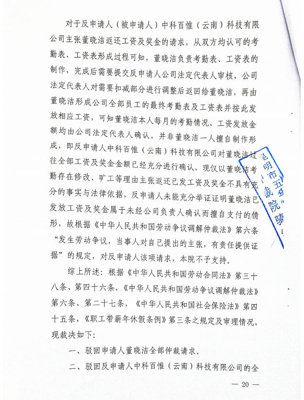 昆明经济技术开发区劳动人事争议仲裁委员会仲裁裁决书2