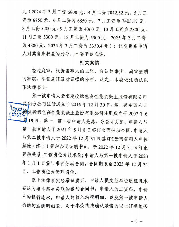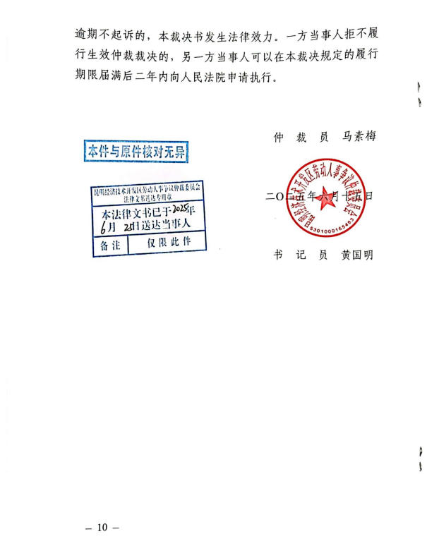 昆明经济技术开发区劳动人事争议仲裁委员会仲裁裁决书2