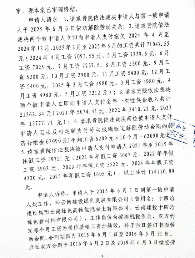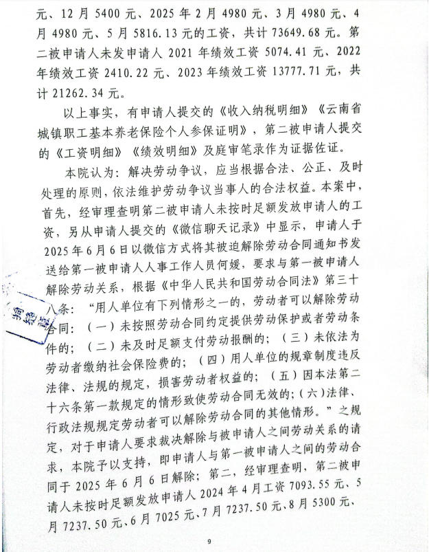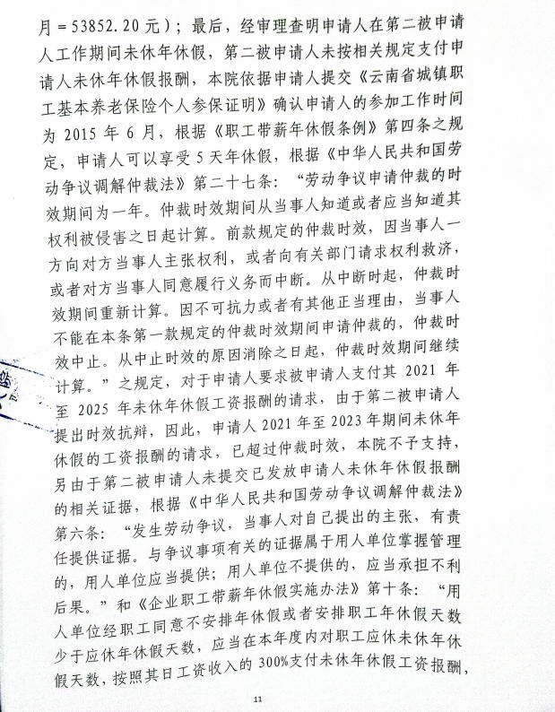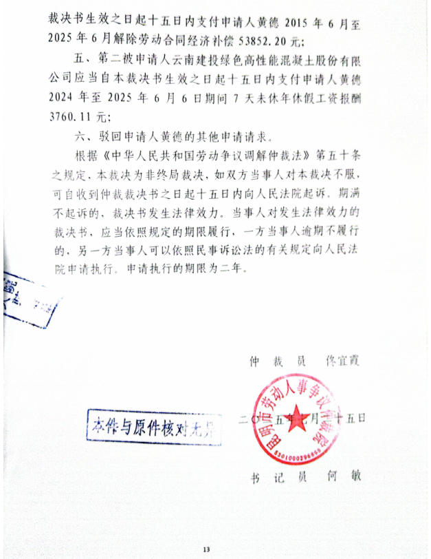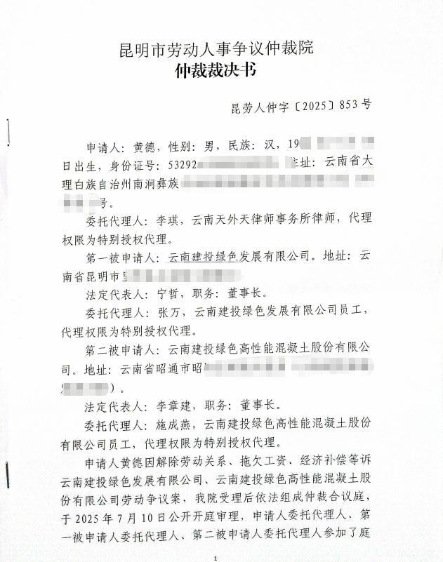 昆明市劳动人事争议仲裁院仲裁裁决书