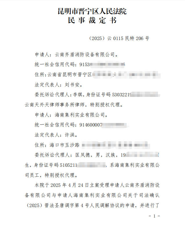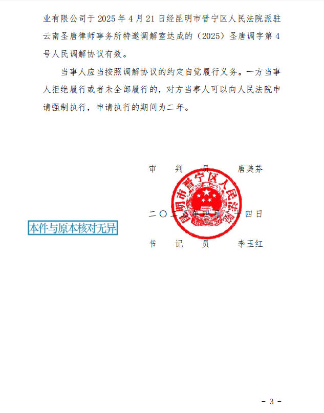 昆明市晋宁区劳动人事争议仲裁院仲裁调解书