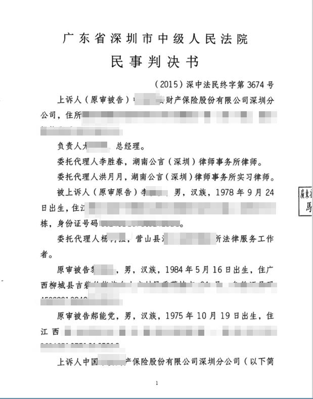 **财险深圳分公司与被上诉人马*责任保险合同纠纷一案