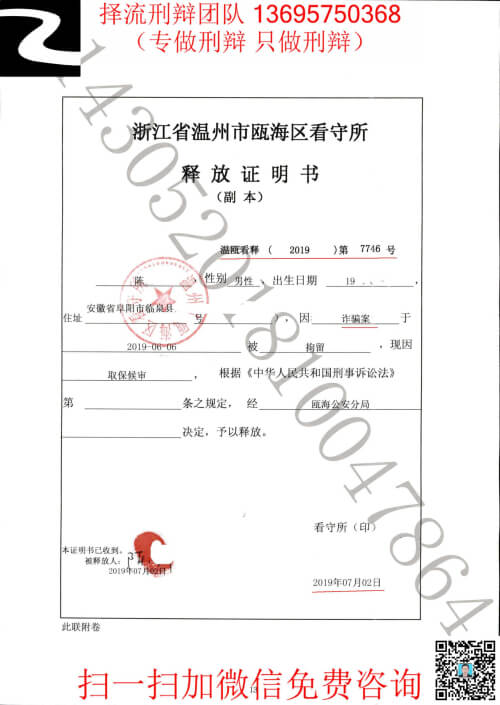 3、争取到了不起诉不被判刑。2021年1月13日,瓯海区检察院以其他证据不足对陈某不起诉,陈某终获无罪。