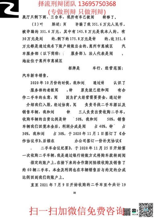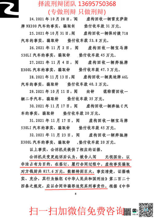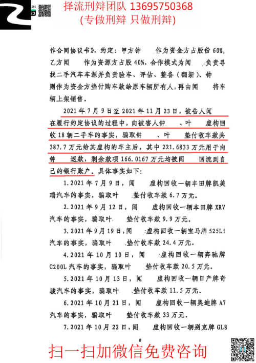 闻某某涉嫌合同诈骗817.6万元。经辩护,法院采纳辩护人意见,只认定闻某某合同诈骗166.0167万元。