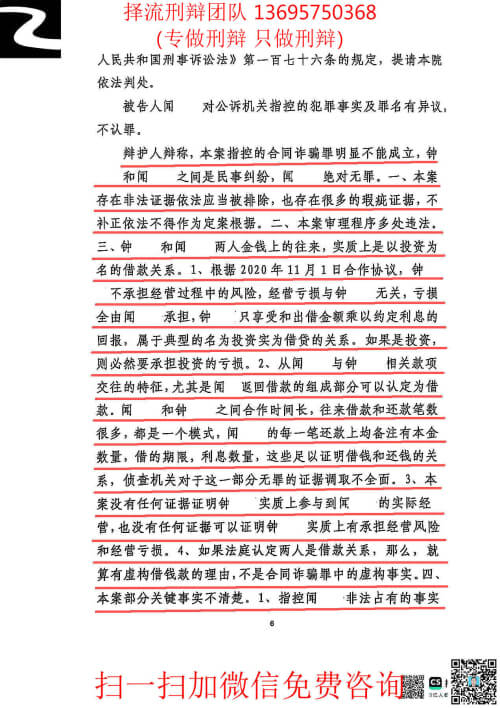 闻某某合同诈骗罪一案的辩护效果体现在: