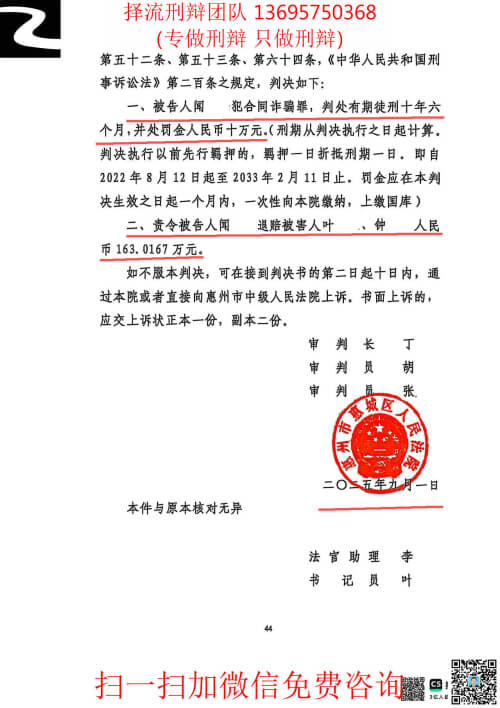 湖南择流刑辩团队第809个有效辩护案例,2025年度第58个有效辩护案例,合同诈骗罪第8个有效辩护案例。