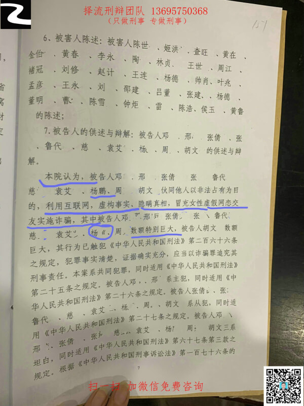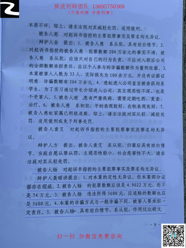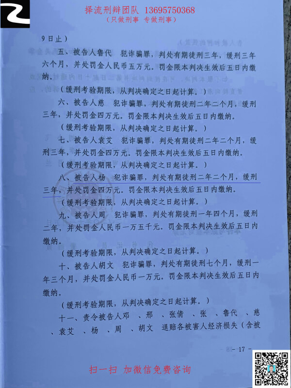 1、指控杨某诈骗金额744134元,属于诈骗数额特别巨大,法定刑为10年以上,经辩护,婺城区法院釆纳辩护律师意见,认定为诈骗数额巨大,法定刑降低为3至10年。