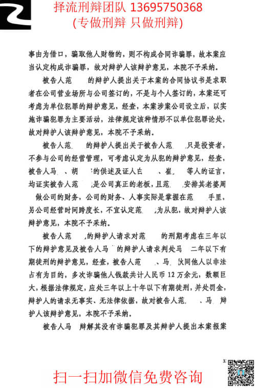 马某诈骗罪一案的辩护效果体现在: