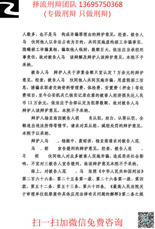 2,对于某些案件,认罪认罚确实是毒药,很害人。本案中,马某如果认罪认罚了,就会判10年9个月,另外第一被告人范某某虽不认罪但也会因为马某的认罪判到10年以上,第三被告人员工胡某某因害怕判到10年以上一直违心配合办案机关认罪认罚,胡某某原来指控金额为40万,当判决金额打成了12万,他的刑期还是原来的2年6个月,没少判1天。另外认罪认罚也会导致办案机关放松对证据的审查,无形中提高了出冤假错案的概率。