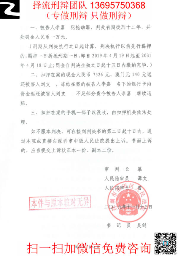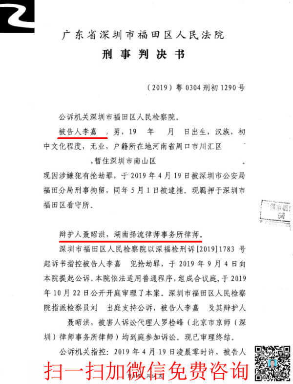 湖南择流刑辩团队第337个有效辩护案例,2019年度第66个有效辩护案例,抢劫罪第20个有效辩护案例。