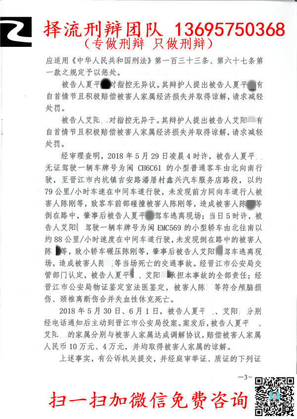 夏平文犯交通肇事罪,致一人死亡,负事故全部责任,且有逃逸情节,有赔偿和谅解和自首,晋江市人民法院减轻处