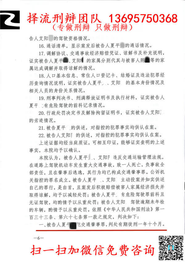 夏平某交通肇事逃逸轻判1年10月