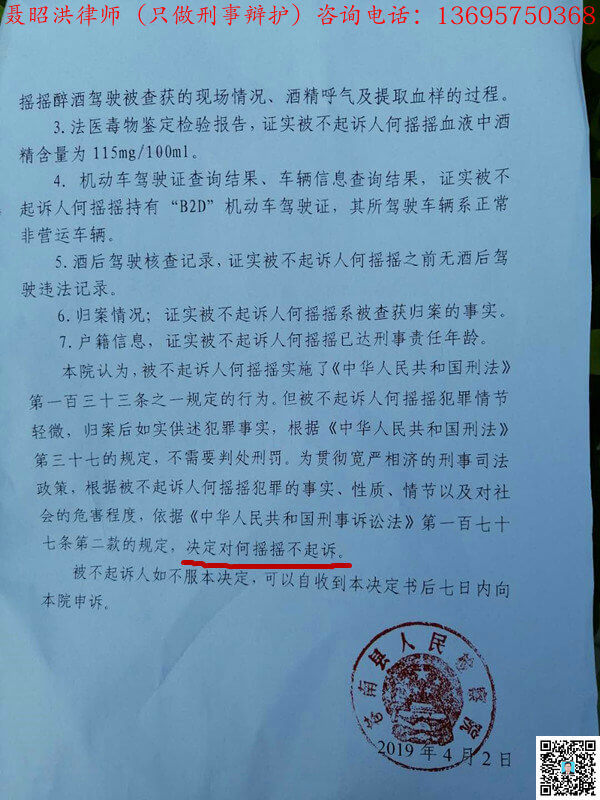 何摇某危险驾驶不起诉