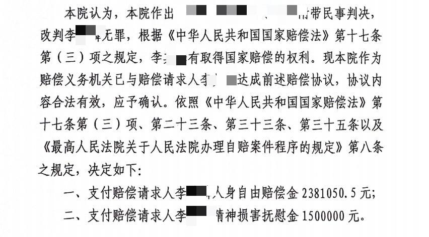 再审法院经过审理及论证,最终采纳了苏湖城律师团队的辩护意见,改判原审被告人李某某无罪,不承担民事赔偿责任,李某某于2023年11月28日从监狱释放。基于当事人李某某及其家属的信任,苏湖城律师团队继续接受其申请国家赔偿的委托并于2024年3月1日成功促使李某某与赔偿义务机关达成赔偿协议,赔偿金额共计388万元。