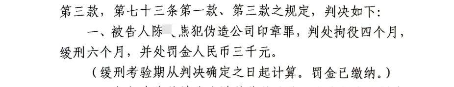 (一)陈某燕涉嫌伪造公章罪一审判处缓刑