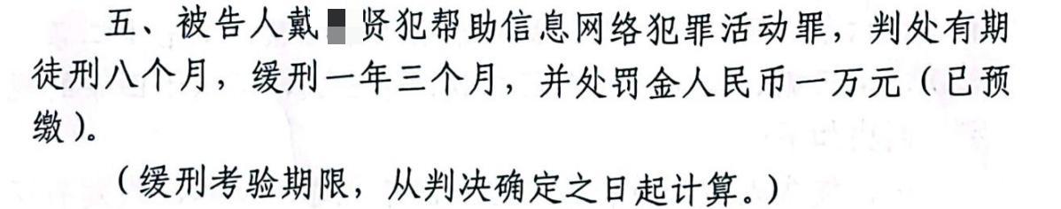 (二)戴某贤帮助信息网络犯罪活动罪一审判处缓刑