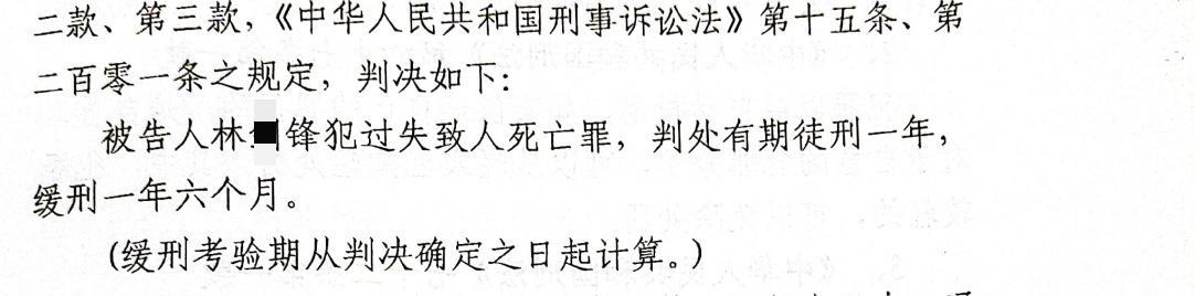 (三)林某峰涉嫌过失致人死亡罪一审判处缓刑