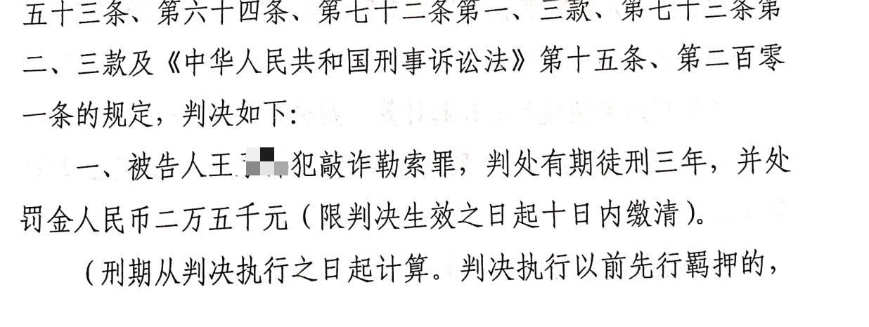 (七)王某涉嫌敲诈勒索罪案件轻判三年