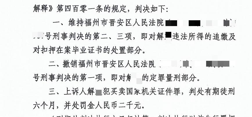 X市中级人民法院撤销一审对解某定罪量刑部分的判决,改判其犯买卖国家机关证件罪一罪,判处有期徒刑六个月。