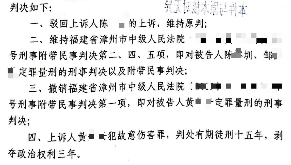 最终法院经审理,改判上诉人黄某犯故意伤害罪,判处有期徒刑十五年,剥夺政治权利三年。