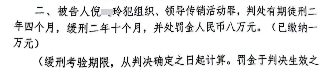 (四)倪某玲涉嫌组织、领导传销活动罪一审判处缓刑