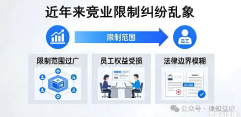 《指引》出台背景:竞业限制滥用的乱象与治理近年来,竞业限制纠纷案件数量快速增长、引发蝴蝶效应。一些企业在协议中将前台、保安等普通岗位员工也纳入竞业限制范围,明显违背制度初衷。一些企业要求劳动者承担超高违约金,形成明显不对等的权利义务关系。某些科技公司甚至将竞业限制范围扩大至整个互联网行业,在行业内引发讨伐声一片。