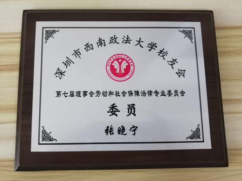 张晓宁,西南政法大学法学学士,广东解治律师事务所执业律师,深圳市盐田区法律援助中心入库律师,深圳市盐田社区法律顾问,深圳市律师协会网络与通信产业法律服务团、海洋产业法律服务团成员,深圳市法学会律师学研究会研究员,西南政法大学校友会劳动和社会保障专业委员会委员。