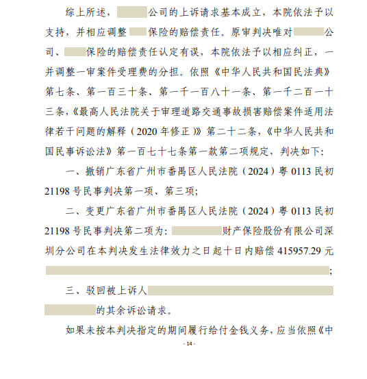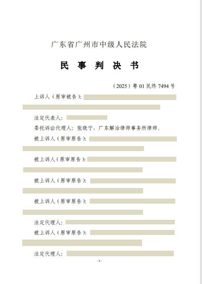某公司交通事故责任纠纷一案(案号:2025粤01民终7494号),一审判决某公司承担18万元的赔偿责任,二审代理某公司,成功推翻一审判决,改判某公司无需承担赔偿责任;