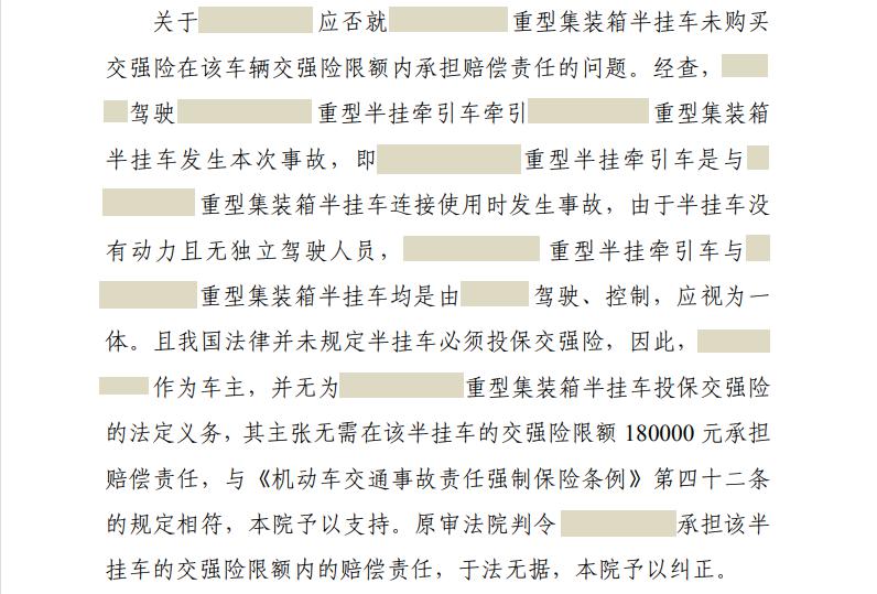 接受委托后,我首先向法院申请调阅了一审的所有案卷材料,了解了案件的基本事实和一审的整个审判经过;其次,我又查询了相关的法律规定和案例,查询到《机动车交通事故责任强制保险条例》第四十二条明确规定挂车并不需要单独投保交强险;最后,我又向我做车辆保险业务的一个朋友咨询“半挂车在实践中能否单独购买交强险”,得到的回复是“不能”。由此,我基本确定了这个案子二审的诉讼方案,同时也判断出一审的判决确实是有问题,有很大概率是能在二审中被推翻的。