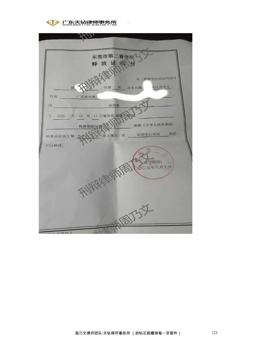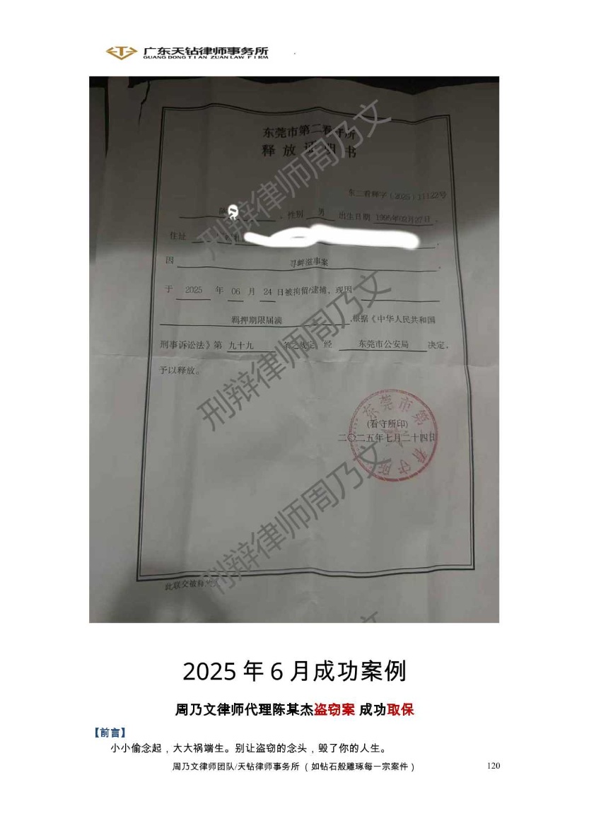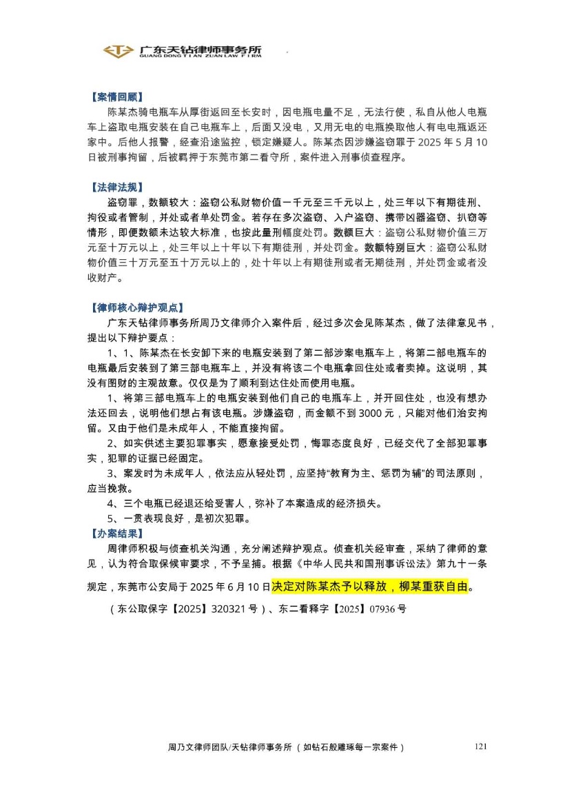 2025年6月成功案例 周乃文律师代理陈某杰盗窃案 成功取保