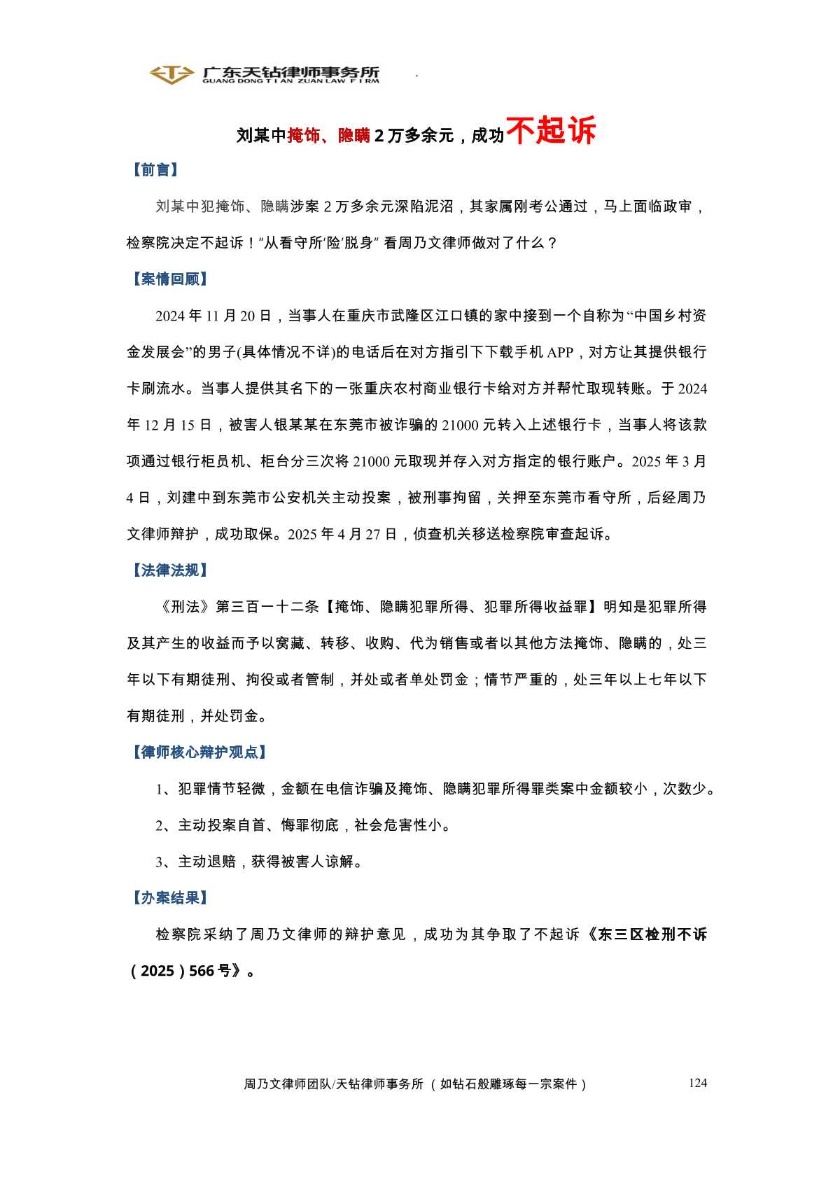 2025年2月案例 周乃文律师代理刘某盗窃案成功取保候审