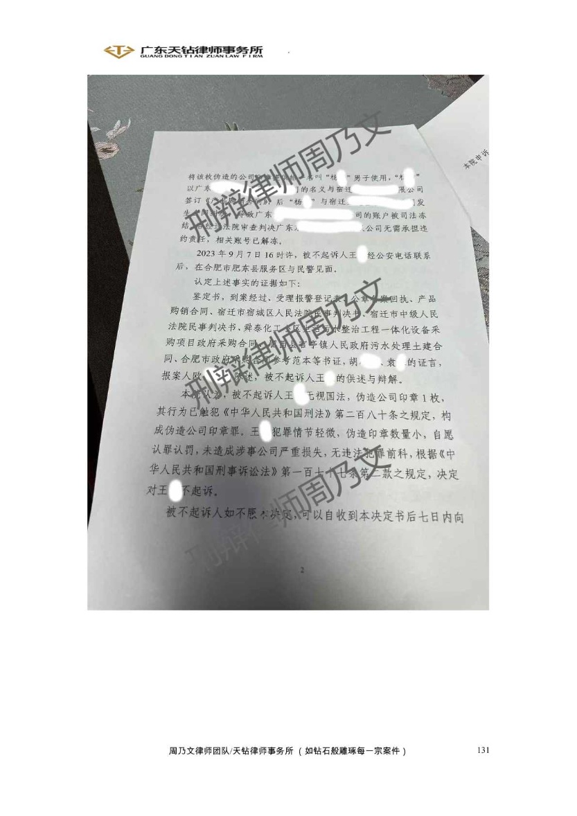 2025年8月成功案例 周乃文律师代理黄某某职务侵占案 成功无罪释放