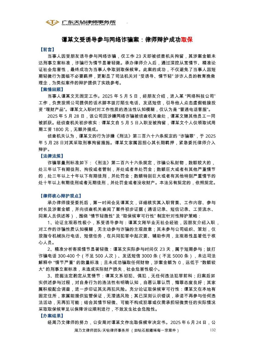 2025年3月成功案例 专业攻坚!助力职务侵占案当事人取保成功!