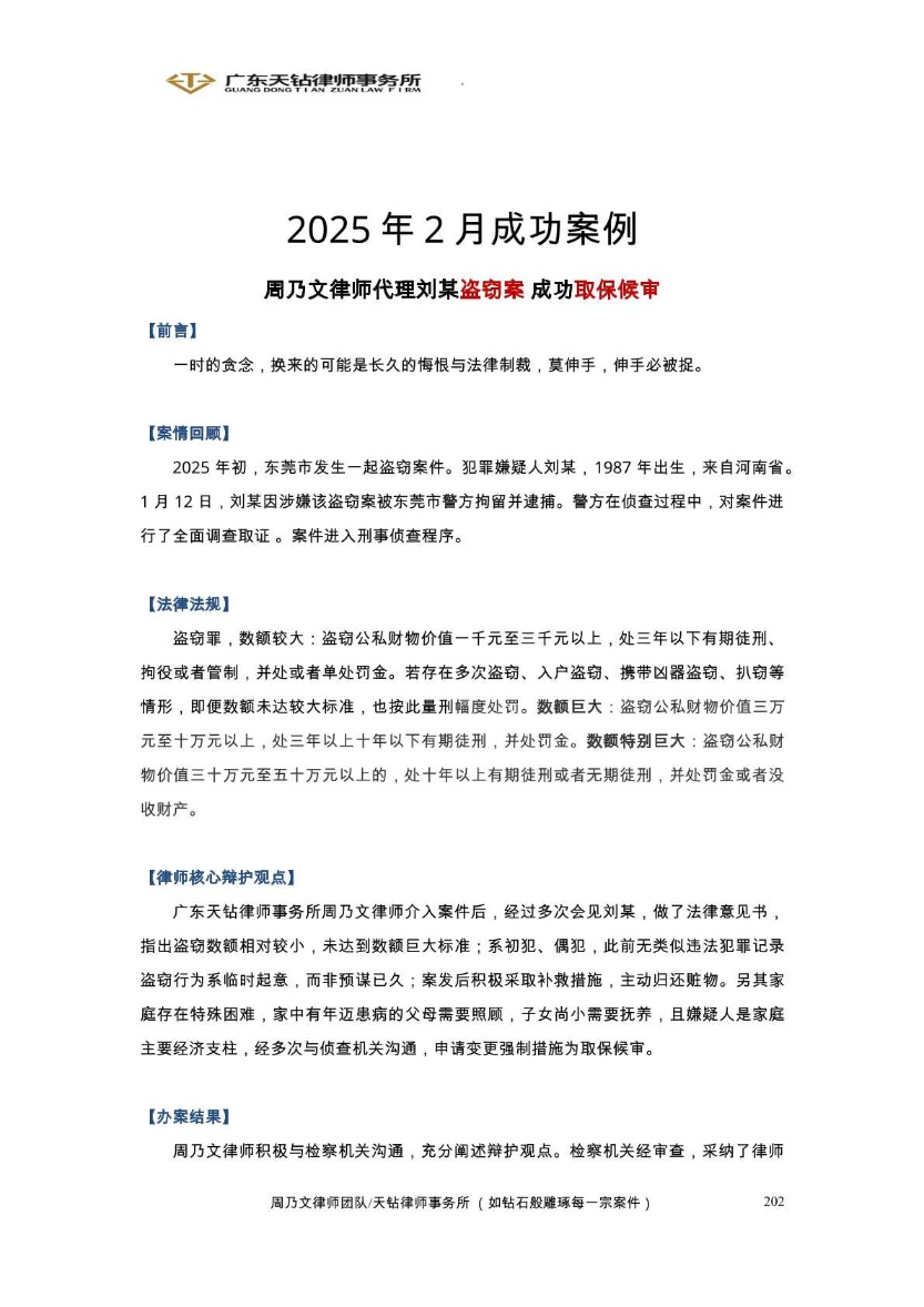 2025年2月案例 周乃文律师代理刘某盗窃案成功取保候审