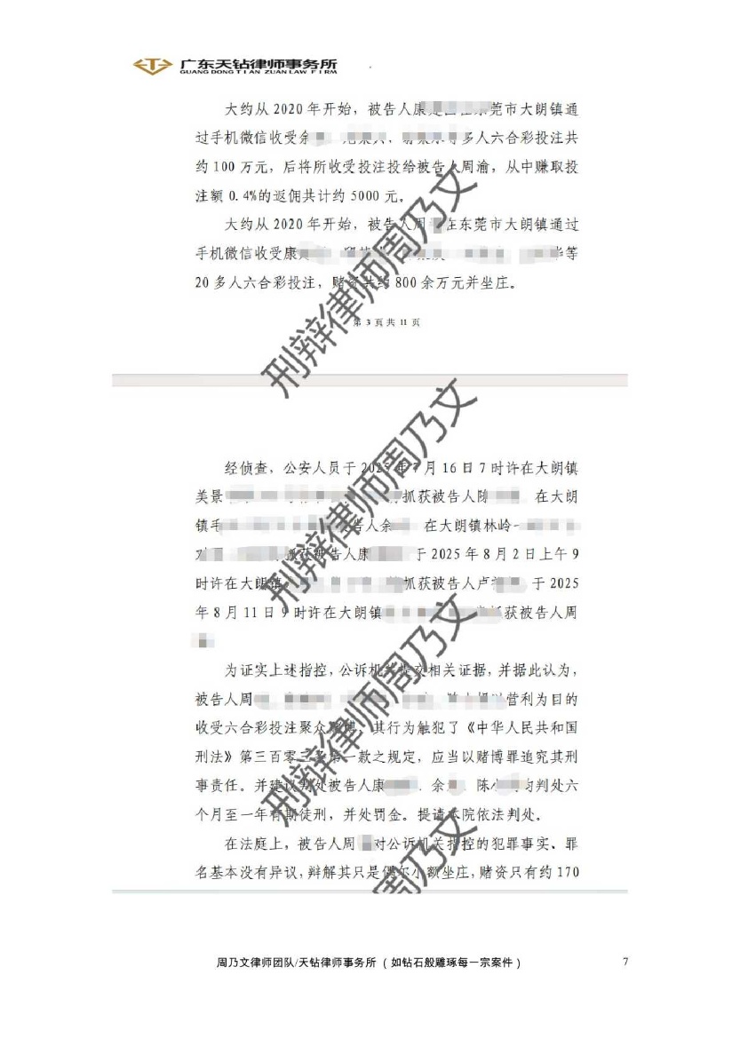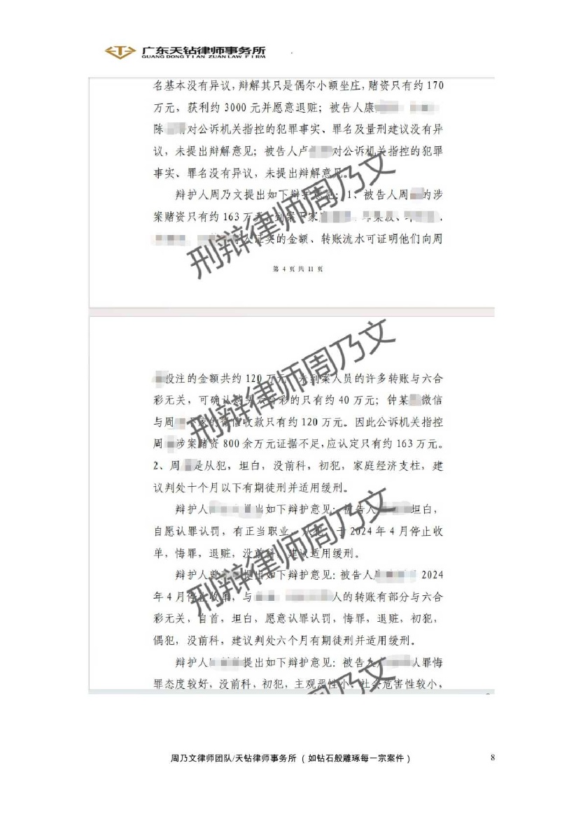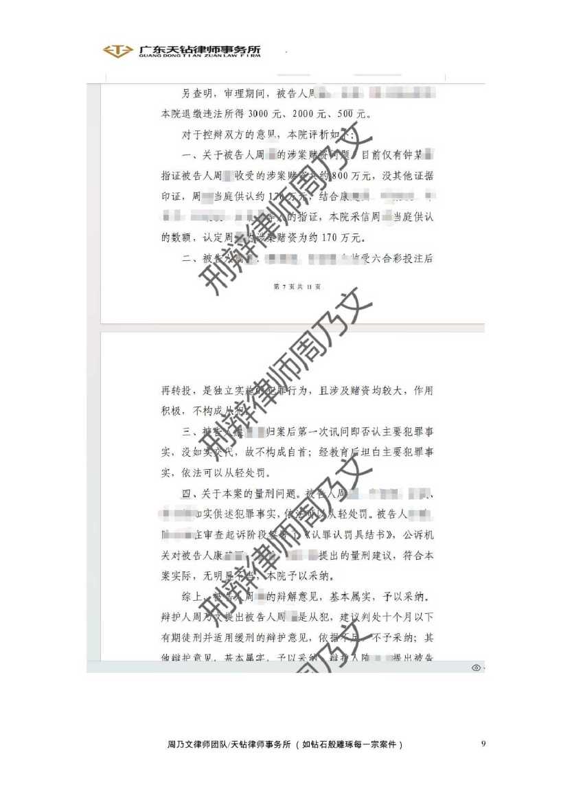 2025年7月成功案例 周乃文律师承办周某某六合彩投注涉嫌赌博罪成功争取缓刑