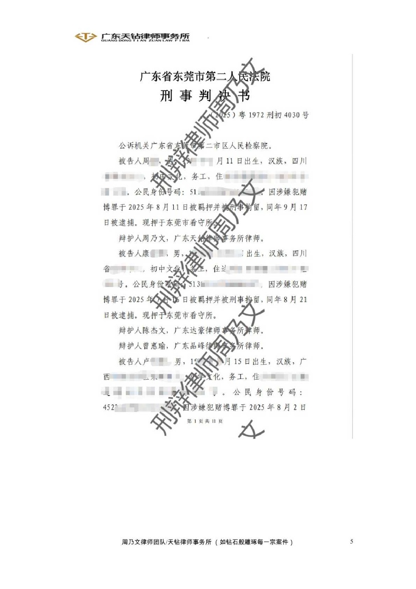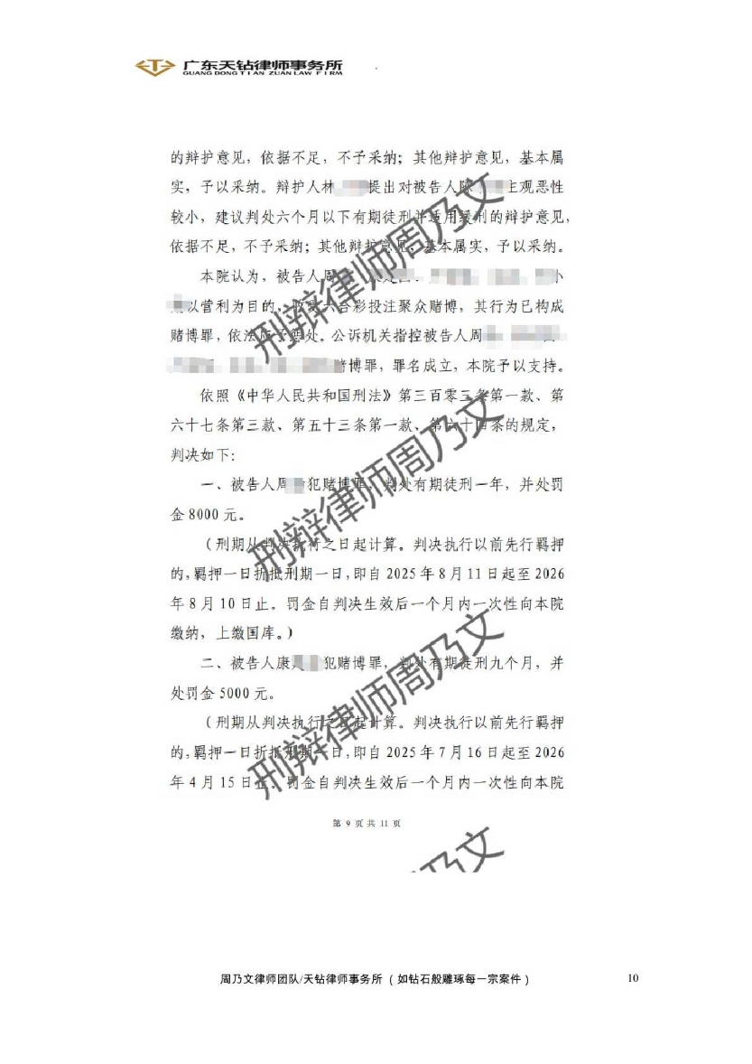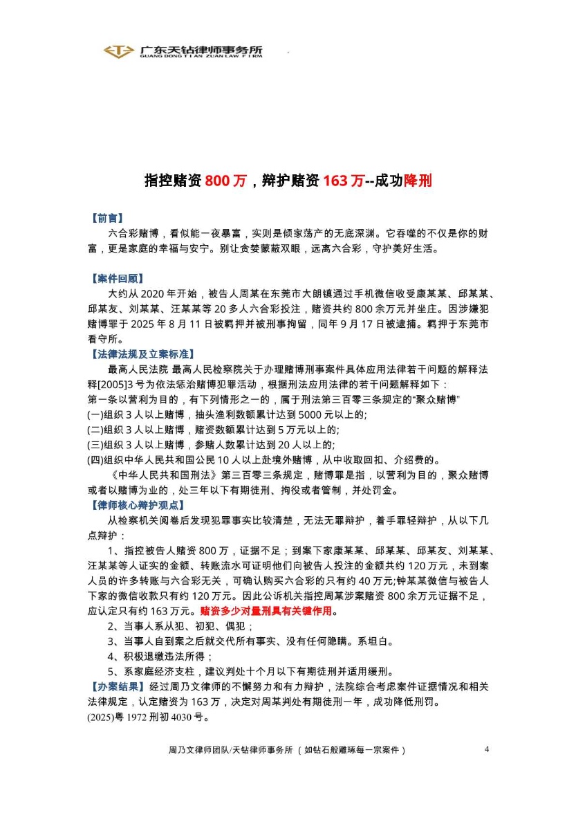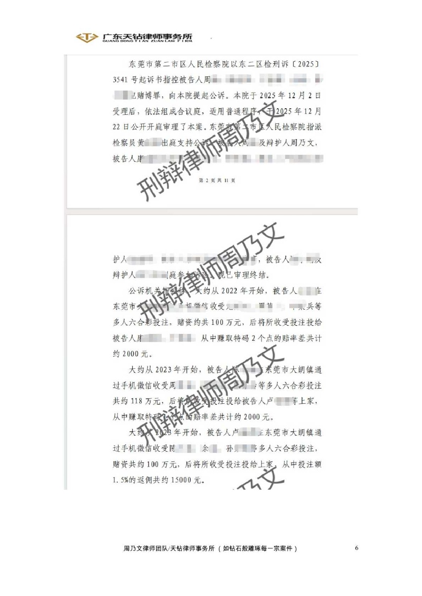 2025年7月成功案例 周乃文律师承办周某某六合彩投注涉嫌赌博罪成功争取缓刑