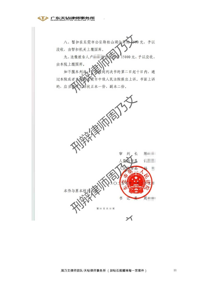 周乃文律师代理赖某销售假冒注册商标罪 三年以上的案件,成功争取缓刑