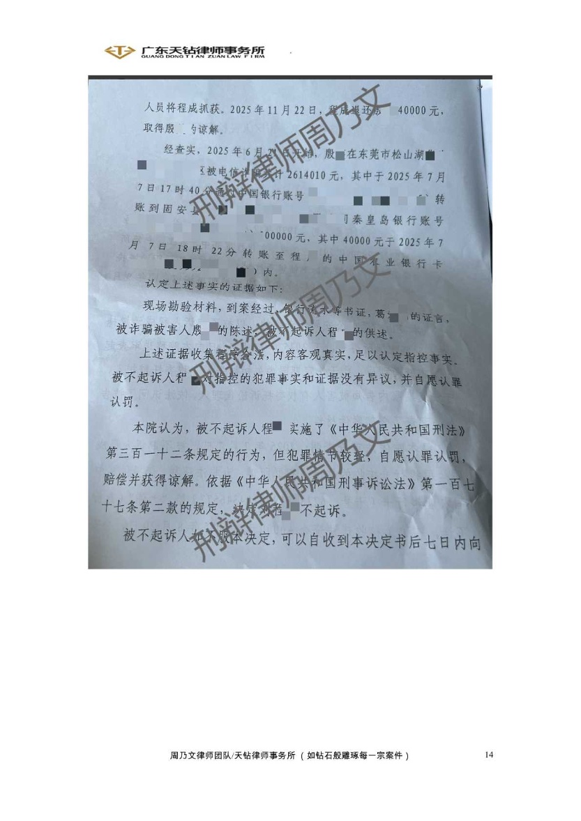 2025年8月成功案例 周乃文律师代理黄某某职务侵占案 成功无罪释放