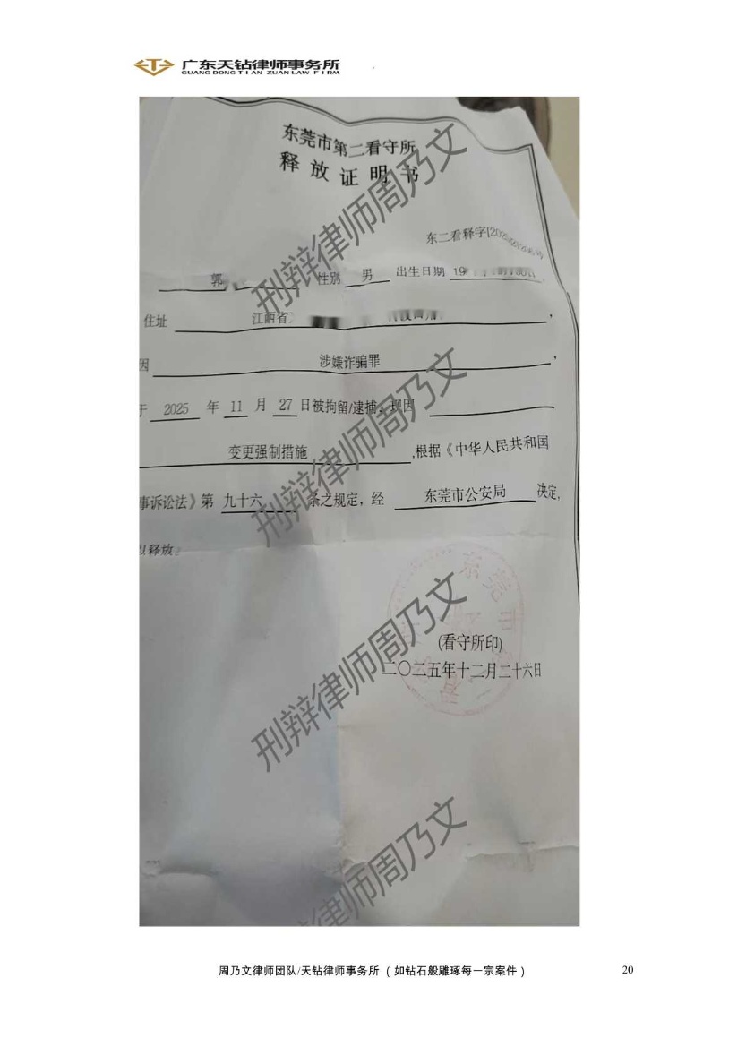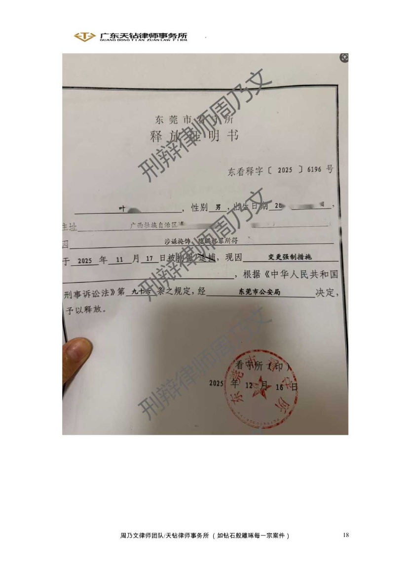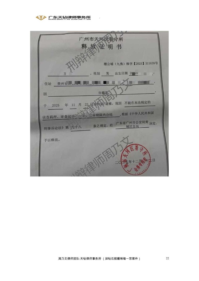 2025年5月成功案例 非法经营“重负”一朝解!周乃文律师助力取保