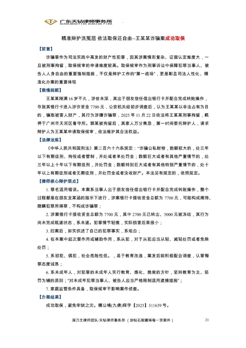 2025年3月成功案例 专业攻坚!助力职务侵占案当事人取保成功!