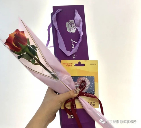 礼品虽轻,关怀暖心。在当今社会,女性发挥着越来越大的作用。登鼎律师事务所的女律师们,更是事业家庭两不误、时尚稳重两相宜的杰出女性,登鼎律师事务所因她们的存在而更加多姿多彩。