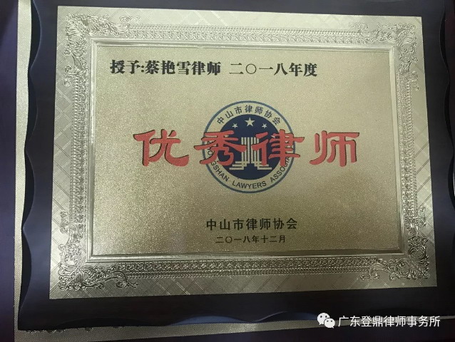 蔡艳雪律师荣获2018年度优秀律师荣誉