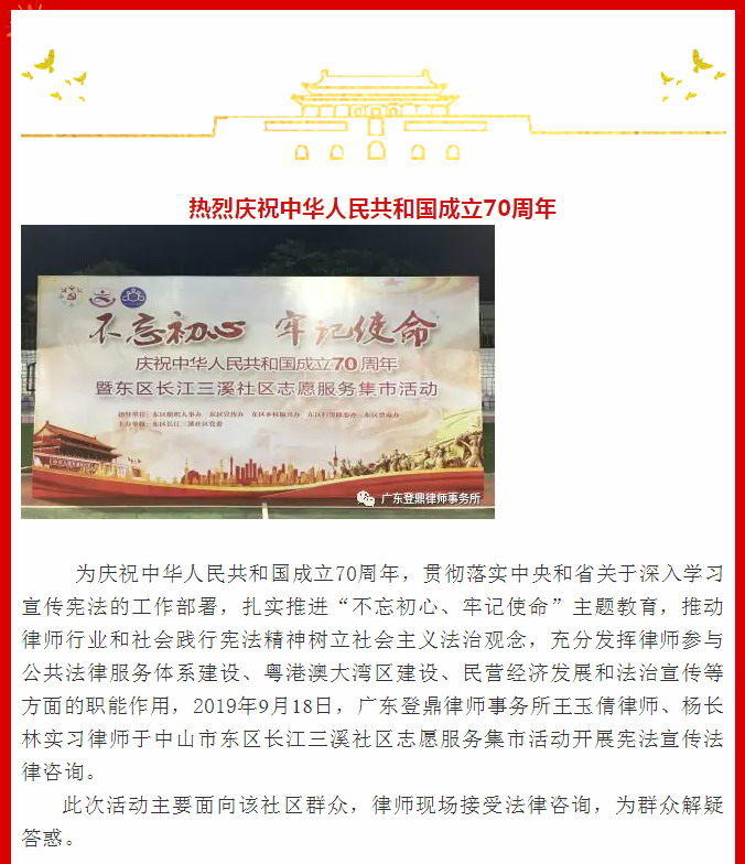 登鼎律师为中山市东区长江三溪社区志愿服务集市活动提供法律咨询