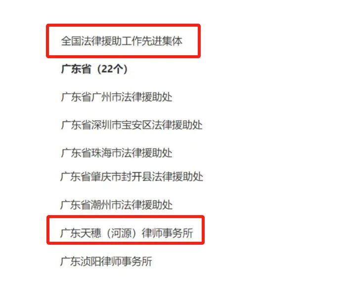 广东天穗(河源)律师事务所创所主任邹光彬律师表示:本所这次获评司法部国家级-法律援助先进集体单位荣誉,离不开社会各界一直以来的支持和认可,我们将一如继往地致力于利用法律专业技能多维度帮扶弱势群体,助力河源的法治营商环境建设,推动河源社会经济的高质量发展,做党和人民满意的好律师,为中国的法治建设贡献律师力量。