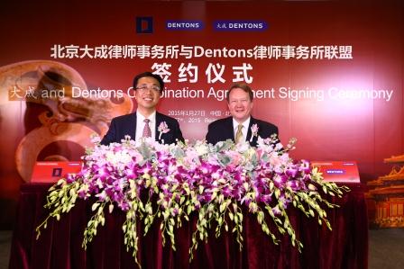 2015年1月27日,亚洲最大律师事务所——北京大成律师事务所与全球十大律所之一的Dentons律师事务所正式签署合并协议,共同打造一个全新的、布局全球的世界领先国际律师事务所。新律所执业律师人数超过6500人,这将是目前全球律师业规模最大的律师事务所。